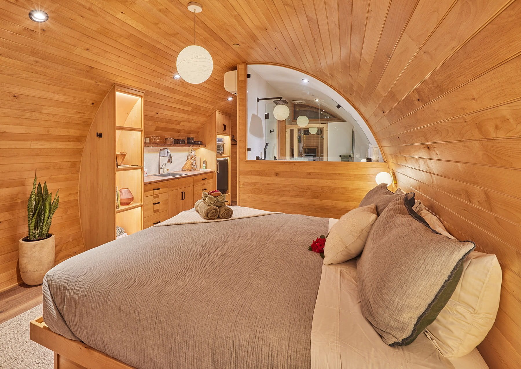 Perched in the redwood canopy of Occidental, the Spyglass Treehouse is a one-bedroom, off-grid retreat that has achieved the status of California’s most wish-listed Airbnb. Guests can soak in forest views through floor-to-ceiling windows, unwind in a cedar hot tub, and luxuriate in an infrared sauna—all while immersed in a handcrafted, nature-rooted dwelling.